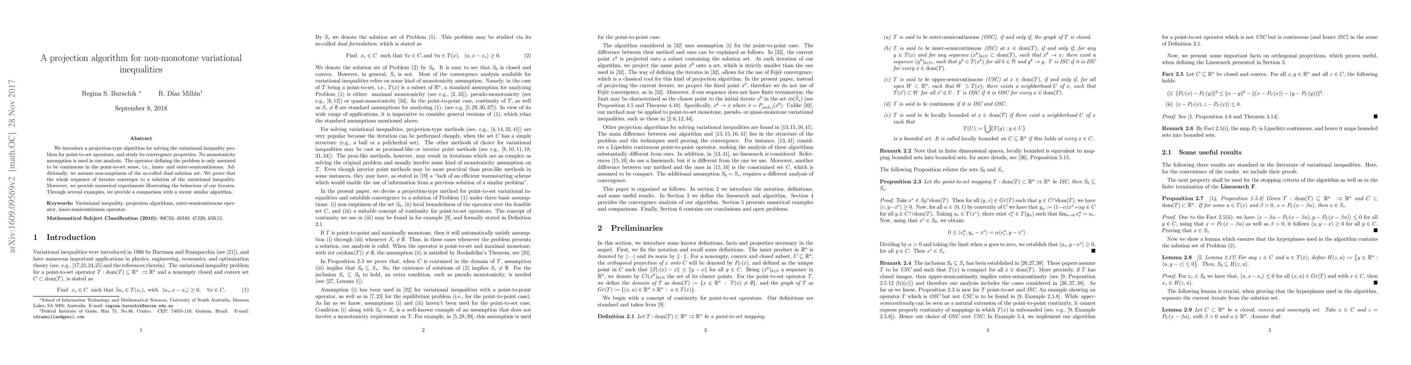 A new projection algorithm is introduced for solving non-monotone variational inequalities without assuming monotonicity, and it's shown to converge to a solution under certain conditions.
