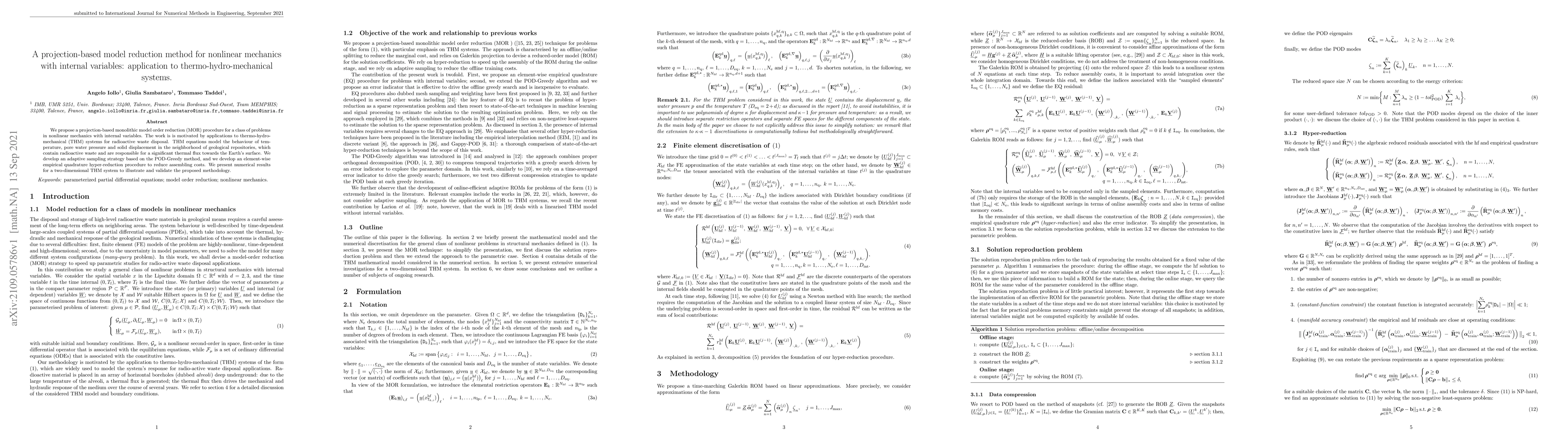 A new method for reducing complex nonlinear simulations in thermohydro-mechanical systems is proposed, using a combination of projection-based model order reduction and adaptive sampling strategies to reduce computational costs.