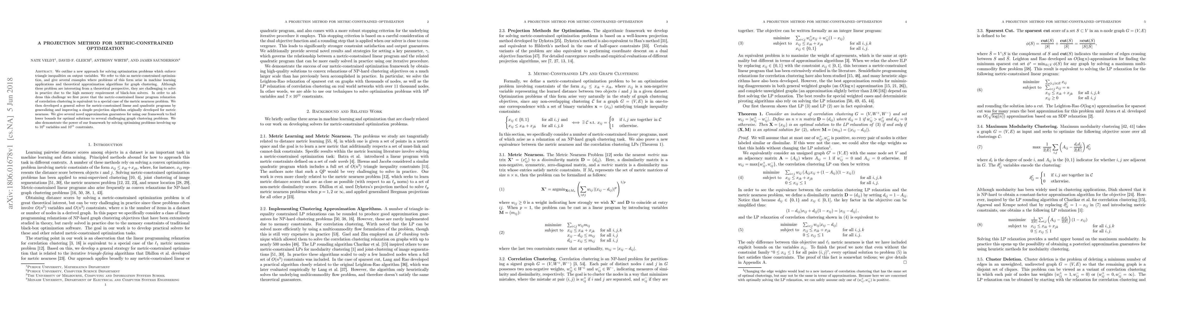 We outline a new approach for solving optimization problems which enforce triangle inequalities on output variables. We refer to this as metric-constrained optimization, and give several examples where problems of this form arise in machine learning applications and theoretical approximation algorithms for graph clustering. Although these problem are interesting from a theoretical perspective, they are challenging to solve in practice due to the high memory requirement of black-box solvers. In order to address this challenge we first prove that the metric-constrained linear program relaxation of correlation clustering is equivalent to a special case of the metric nearness problem. We then developed a general solver for metric-constrained linear and quadratic programs by generalizing and improving a simple projection algorithm originally developed for metric nearness. We give several novel approximation guarantees for using our framework to find lower bounds for optimal solutions to several challenging graph clustering problems. We also demonstrate the power of our framework by solving optimizing problems involving up to 10^{8} variables and 10^{11} constraints.