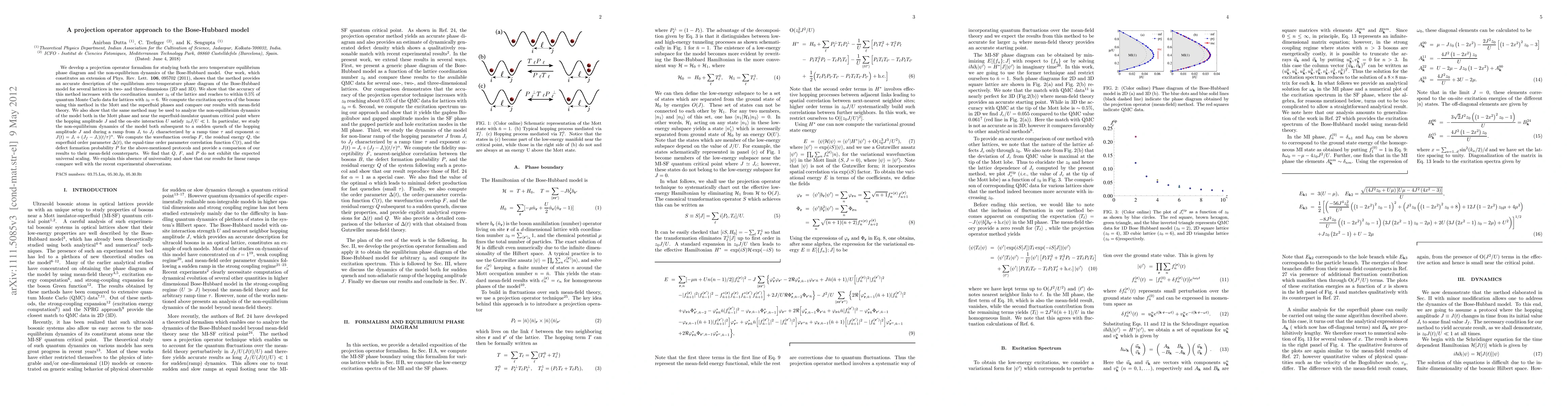 Researchers develop a projection operator approach to study the Bose-Hubbard model's equilibrium phase diagram and non-equilibrium dynamics, finding accurate results for zero-temperature phases in 2D and 3D lattices and good agreement with experimental observations for certain protocols.
