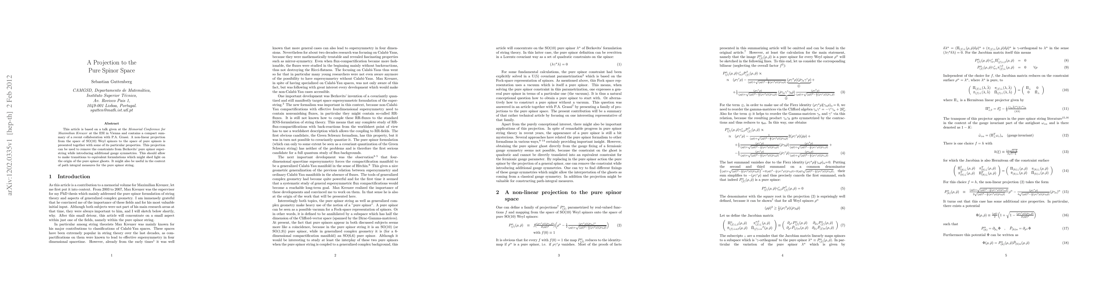 This article is based on a talk given at the Memorial Conference for Maximilian Kreuzer at the ESI in Vienna and contains a compact summary of a recent collaboration with P.A. Grassi. A non-linear projection from the space of SO(10) Weyl spinors to the space of pure spinors is presented together with some of its particular properties. This projection can be used to remove the constraints from Berkovits' pure spinor superstring while introducing additional gauge symmetries. This should allow to make transitions to equivalent formulations which might shed light on the origin of the pure spinor ghosts. It might also be useful in the context of path integral measures for the pure spinor string.