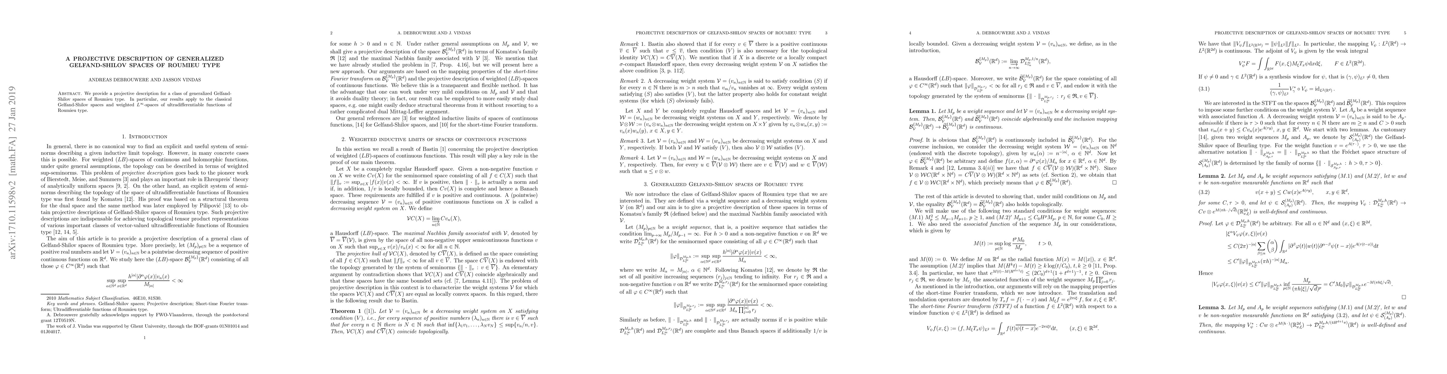 Summary: This paper presents a projective description for generalized Gelfand-Shilov spaces of Roumieu type, extending the results to classical Gelfand-Shilov spaces and weighted $L^\infty$-spaces of ultradifferentiable functions of Roumieu type.