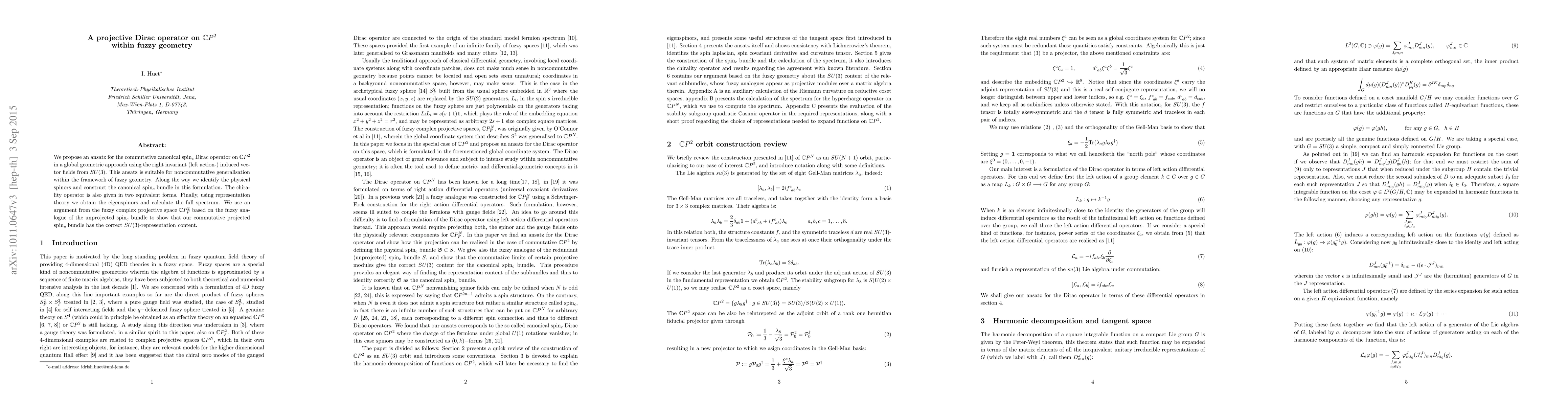 This paper proposes an ansatz for the spin_c Dirac operator on CP^2 using SU(3) vector fields, suitable for noncommutative generalization within fuzzy geometry. It identifies physical spinors, constructs the spin_c bundle, and calculates the full spectrum using representation theory, confirming the SU(3)-representation content through fuzzy CP^2.