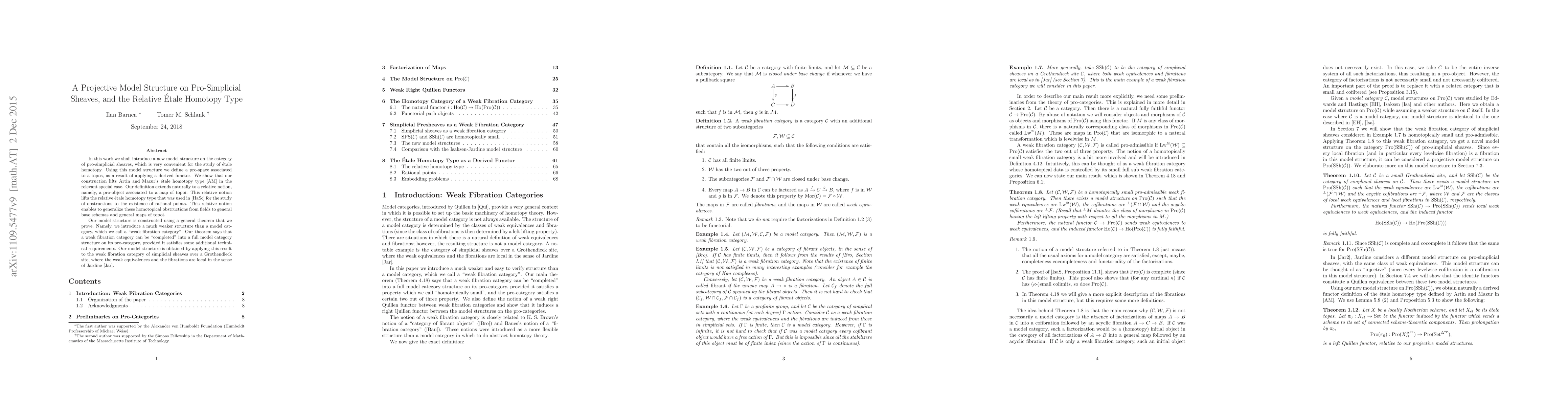 This paper introduces a novel model structure on pro-simplicial sheaves for studying étale homotopy, defining a pro-space linked to topoi and extending it to relative contexts. The new model leverages a "weak fibration category" and a theorem to complete it into a full model category.