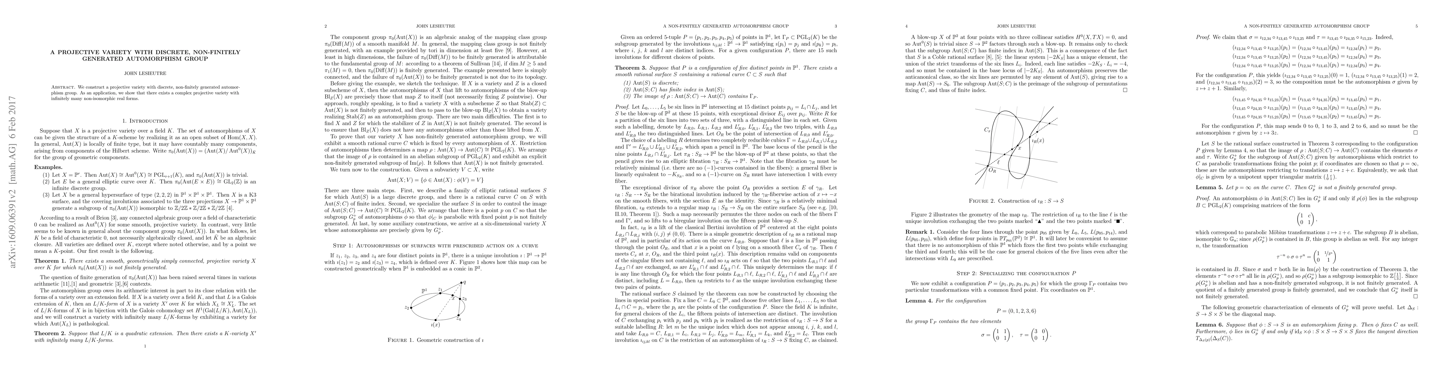 Summary: This paper constructs a projective variety featuring a discrete, non-finitely generated automorphism group, demonstrating the existence of a complex projective variety with infinitely many non-isomorphic real forms.