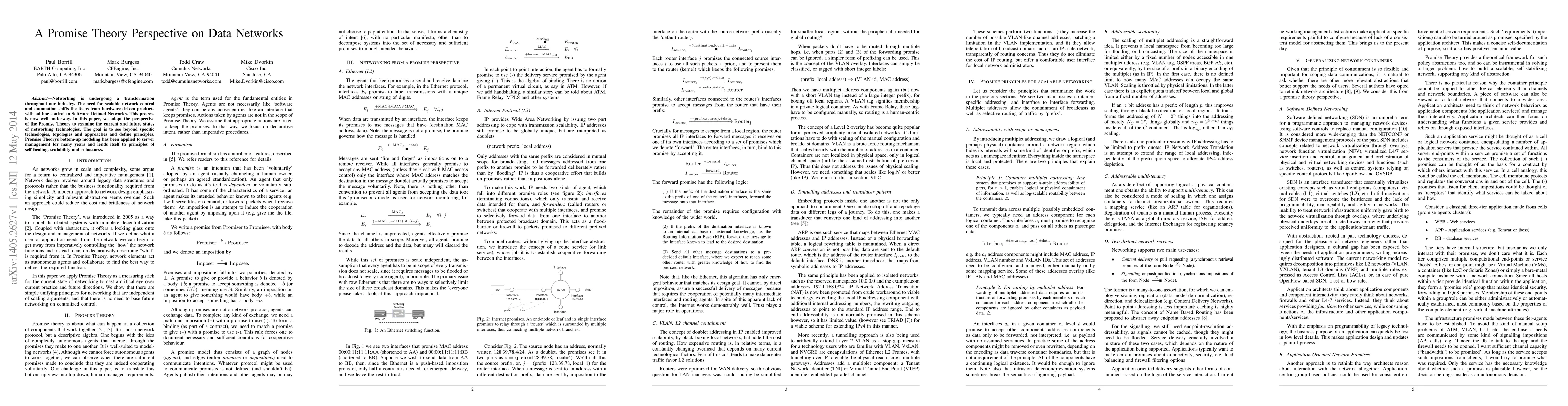 Networking is undergoing a transformation throughout our industry. The need for scalable network control and automation shifts the focus from hardware driven products with ad hoc control to Software Defined Networks. This process is now well underway. In this paper, we adopt the perspective of the Promise Theory to examine the current and future states of networking technologies. The goal is to see beyond specific technologies, topologies and approaches and define principles. Promise Theory's bottom-up modeling has been applied to server management for many years and lends itself to principles of self-healing, scalability and robustness.