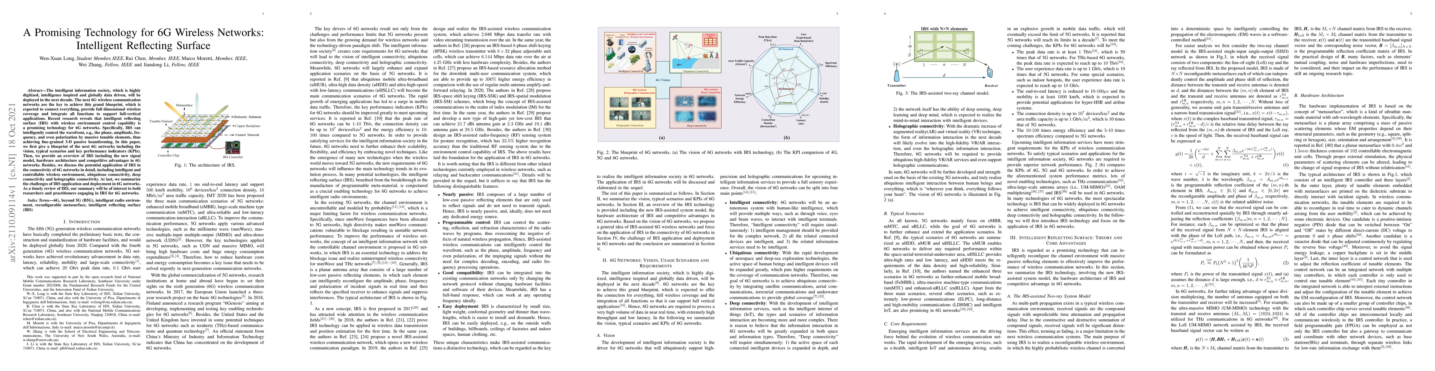 This paper explores intelligent reflecting surface (IRS) as a promising technology for 6G wireless networks, offering fine-grained 3-D passive beamforming through intelligent control of the wireless environment. It outlines the vision and key performance indicators for 6G networks, and discusses IRS's potential applications and challenges in achieving ubiquitous and deep connectivity.