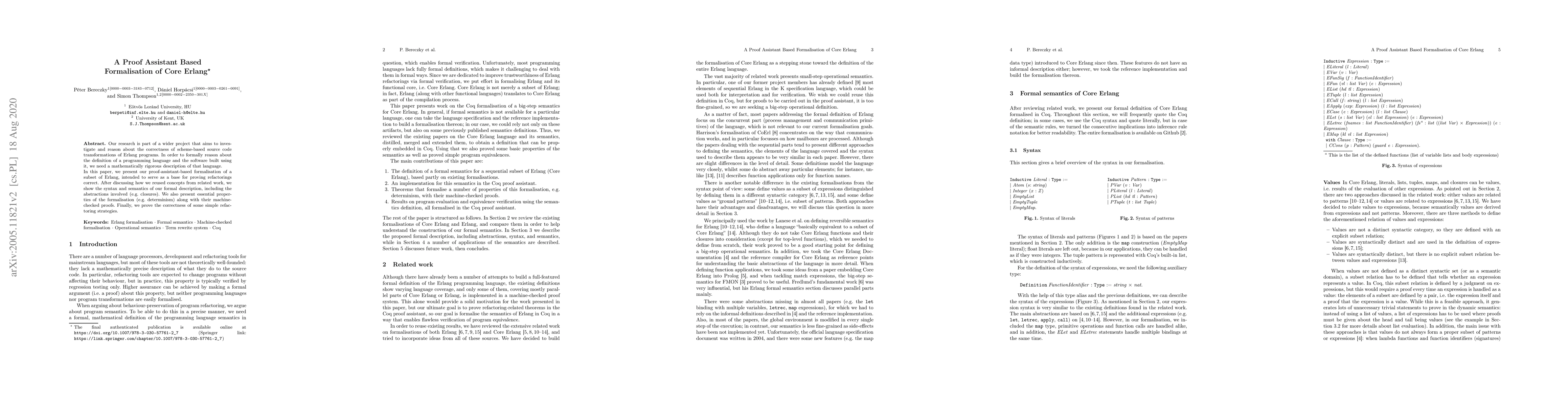 The development of a proof-assistant-based formalisation of Erlang's core syntax and semantics.