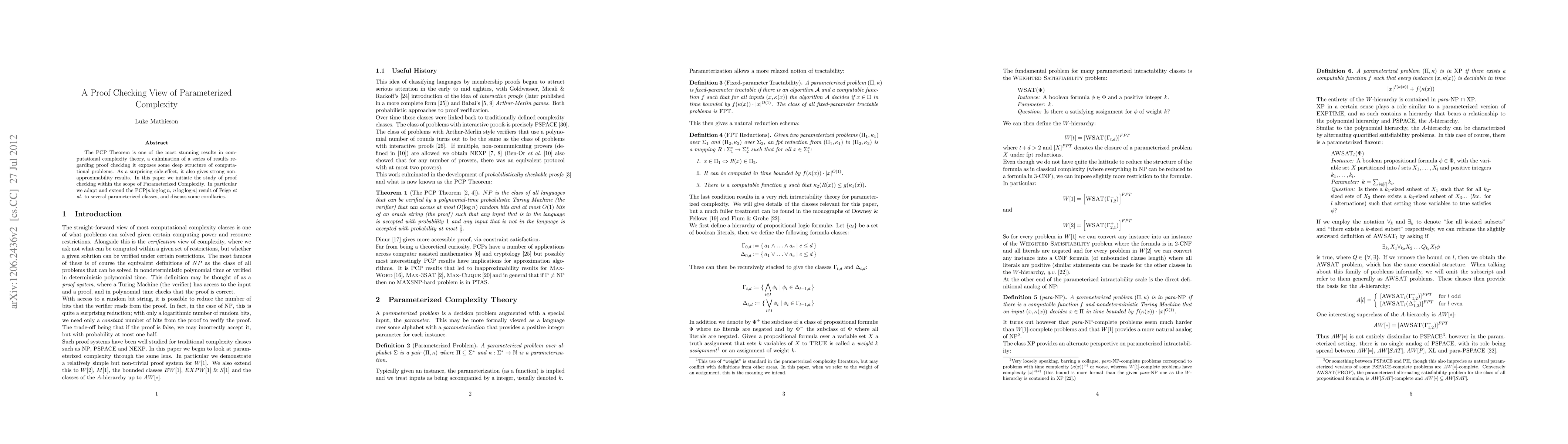 The paper adapts the PCP Theorem to parameterized complexity, extending results to several parameterized classes and discussing corollaries.