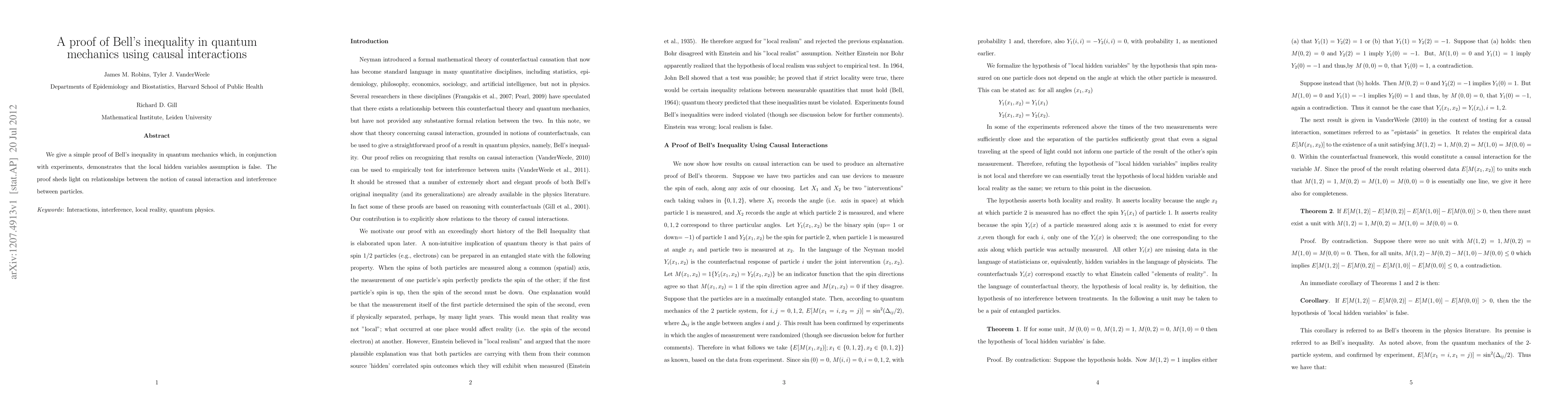 This paper presents a straightforward proof of Bell's inequality in quantum mechanics, showing that local hidden variable theories are untenable. It explores the connections between causal interactions and interference among particles.