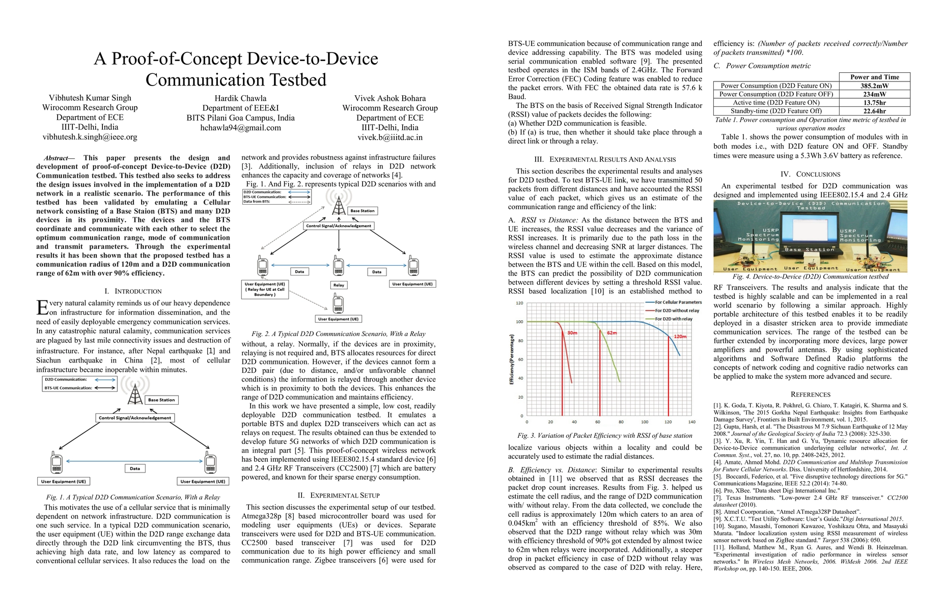 A proof-of-concept device-to-device communication testbed was developed to improve network efficiency, with a 120m communication radius and 90% efficiency in D2D communication.