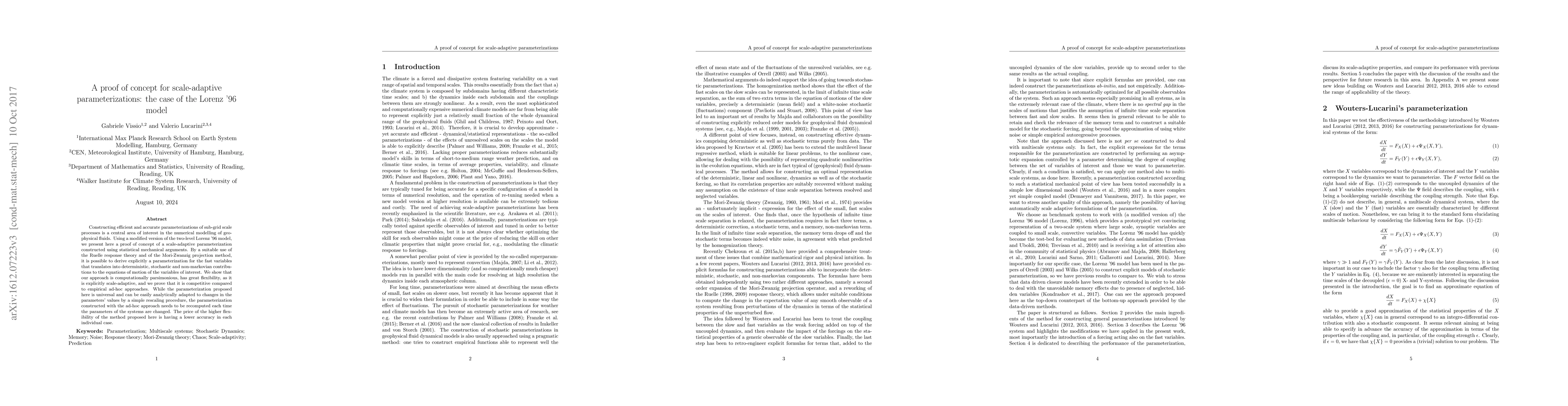 This paper presents a proof of concept for scale-adaptive parameterizations using the Lorenz '96 model, employing statistical mechanics and advanced projection methods to derive a flexible and computationally efficient parameterization for sub-grid scale processes. The proposed method is shown to be competitive with empirical approaches but with lower individual accuracy due to its universal adaptability.