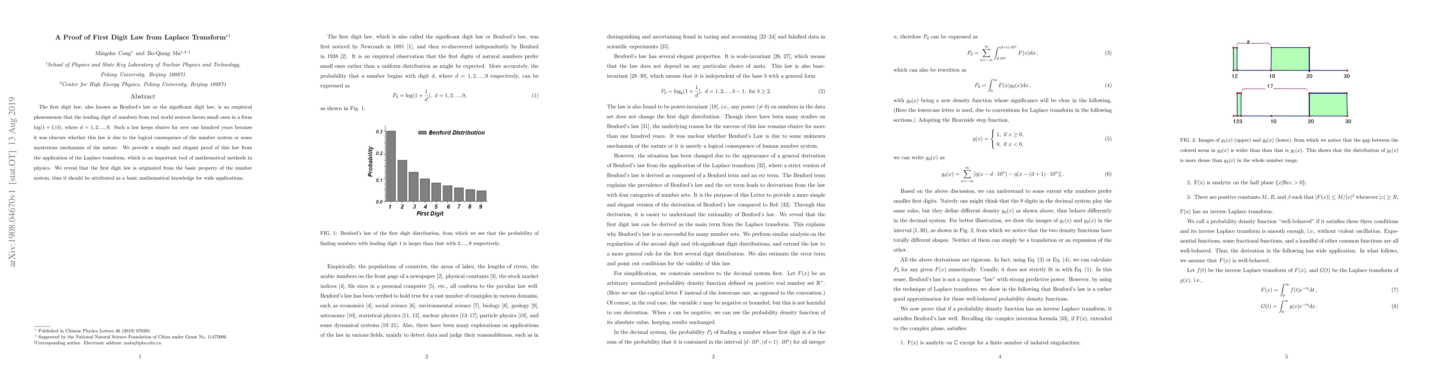 This paper provides a proof of Benford's law using the Laplace transform, demonstrating that the leading digit distribution is a natural consequence of the number system's properties rather than a mysterious phenomenon. The proof reveals that the law is a fundamental mathematical principle applicable across various fields.