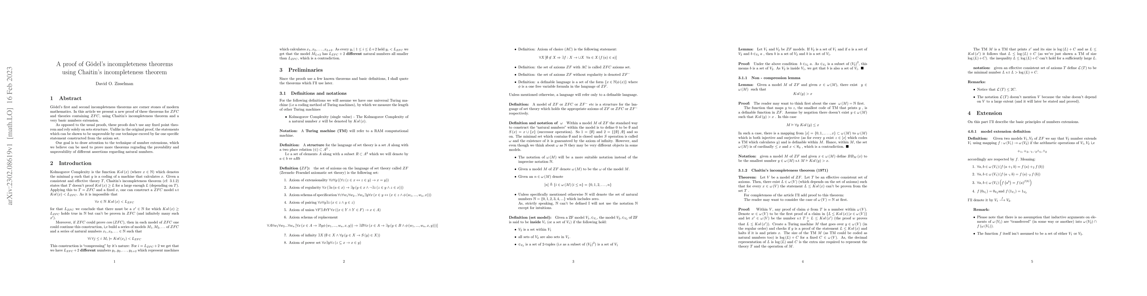 This paper offers a novel proof of Gödel's incompleteness theorems using Chaitin's incompleteness theorem, avoiding fixed-point theorems and relying on set structure. The authors propose that their method, through number extensions, can reveal more unprovable statements than traditional proofs.