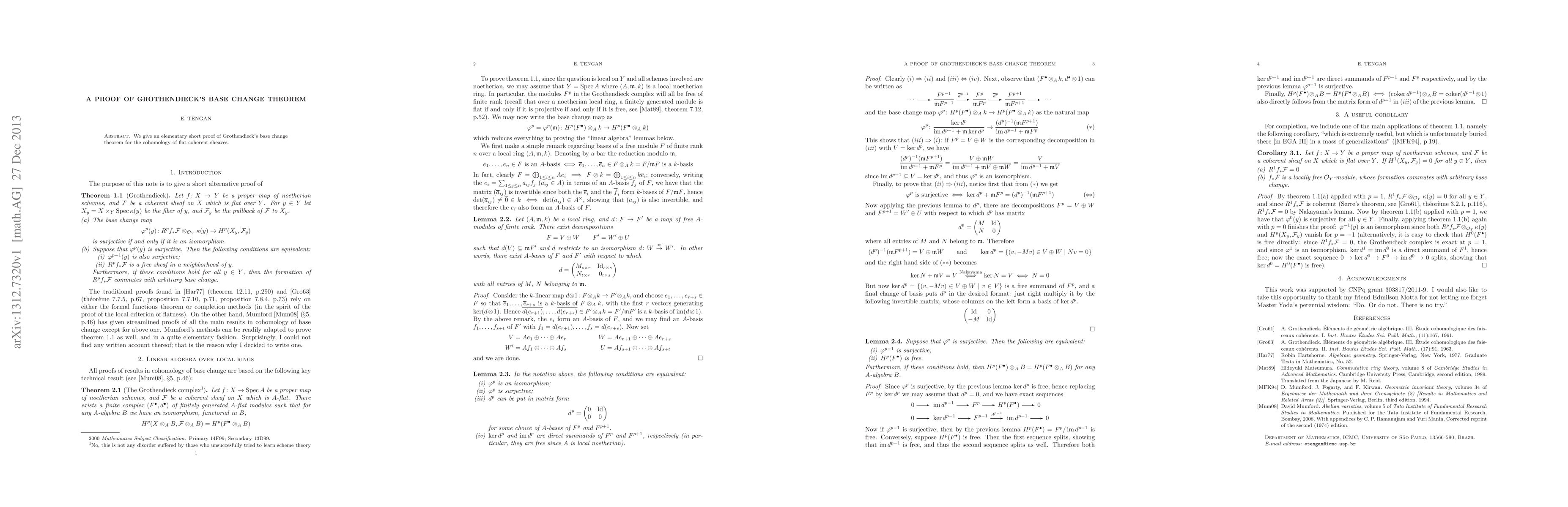Summary: This paper presents a simplified, elementary proof of Grothendieck's base change theorem, specifically addressing the cohomology of flat coherent sheaves. The approach aims to make the theorem more accessible.