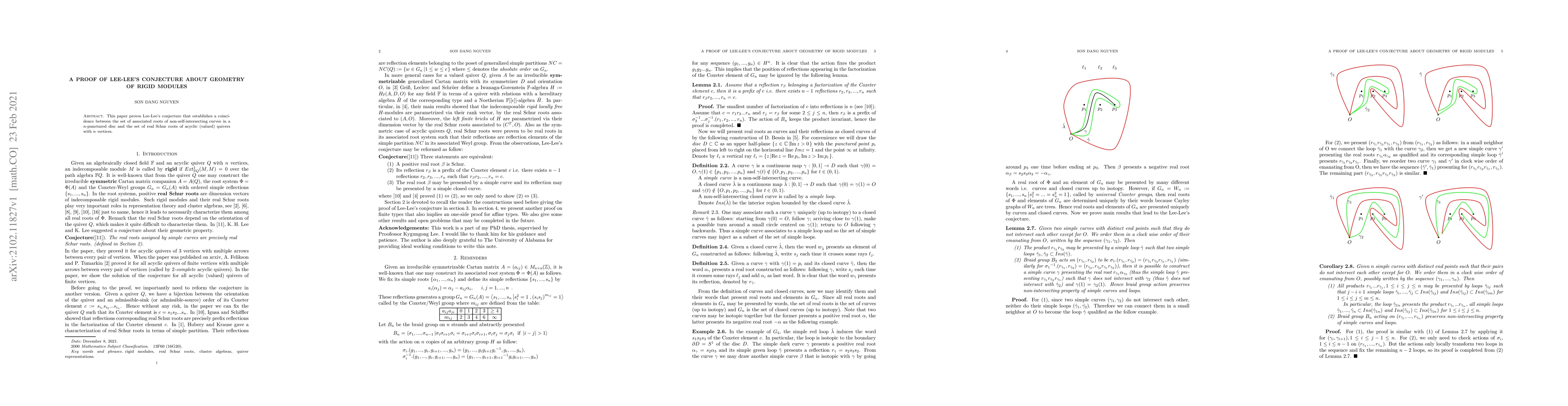 This paper proves Lee-Lee's conjecture that establishes a coincidence between the set of associated roots of non-self-intersecting curves in a $n$-punctured disc and the set of real Schur roots of acyclic (valued) quivers with $n$ vertices.