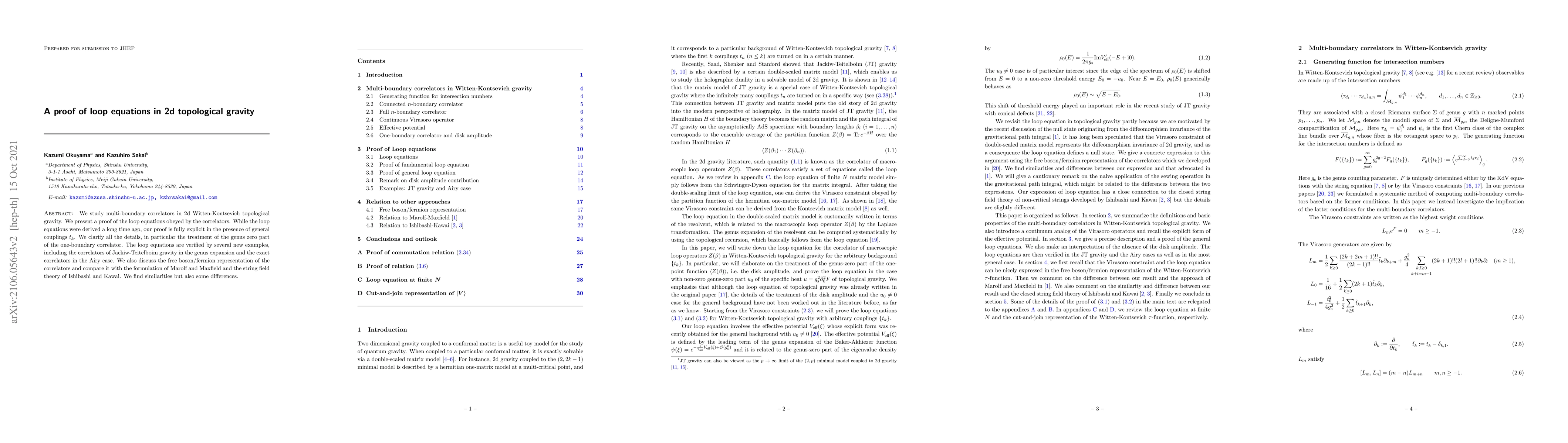We study multi-boundary correlators in 2d Witten-Kontsevich topological gravity. We present a proof of the loop equations obeyed by the correlators. While the loop equations were derived a long time ago, our proof is fully explicit in the presence of general couplings $t_k$. We clarify all the details, in particular the treatment of the genus zero part of the one-boundary correlator. The loop equations are verified by several new examples, including the correlators of Jackiw-Teitelboim gravity in the genus expansion and the exact correlators in the Airy case. We also discuss the free boson/fermion representation of the correlators and compare it with the formulation of Marolf and Maxfield and the string field theory of Ishibashi and Kawai. We find similarities but also some differences.