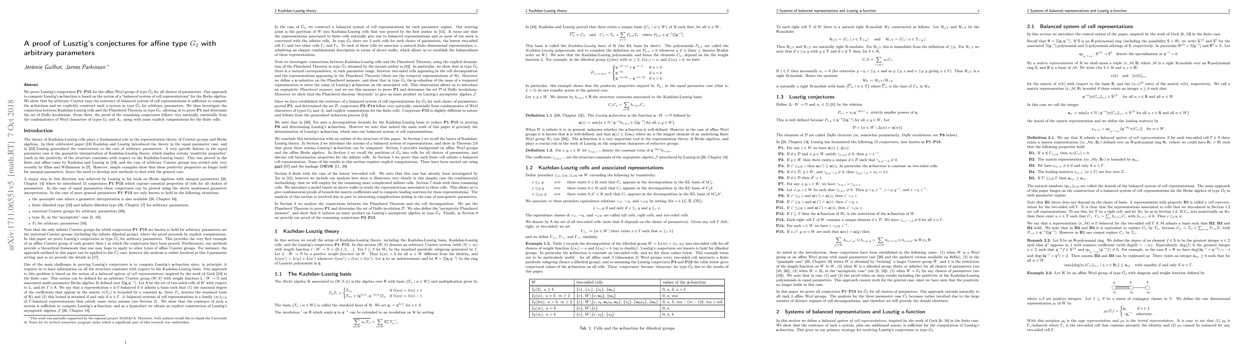 This paper proves Lusztig's conjectures for the affine Weyl group of type $\tilde{G}_2$ using a balanced system of cell representations for the Hecke algebra. The authors establish a connection between Kazhdan-Lusztig cells and the Plancherel Theorem, leading to the proof of all conjectures.