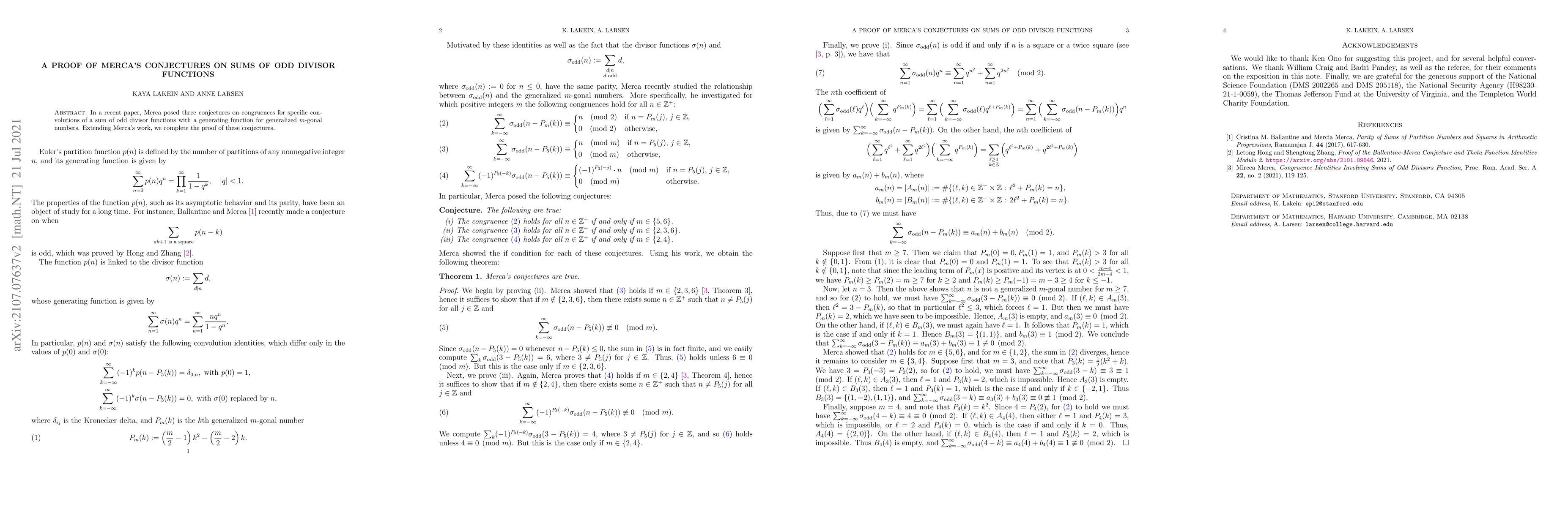 Summary: This paper completes the proof of Merca's conjectures regarding the congruences for convolutions involving sums of odd divisor functions and generating functions for generalized polygonal numbers. The findings extend and validate Merca's original propositions.