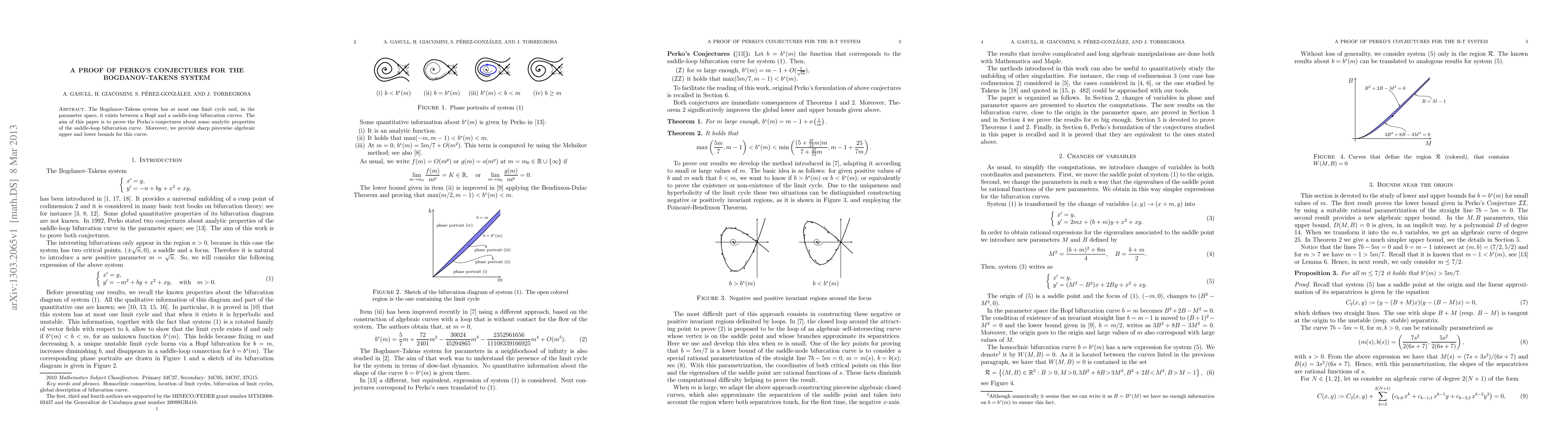 The Bogdanov-Takens system has at most one limit cycle and, in the parameter space, it exists between a Hopf and a saddle-loop bifurcation curves. The aim of this paper is to prove the Perko's conjectures about some analytic properties of the saddle-loop bifurcation curve. Moreover, we provide sharp piecewise algebraic upper and lower bounds for this curve.