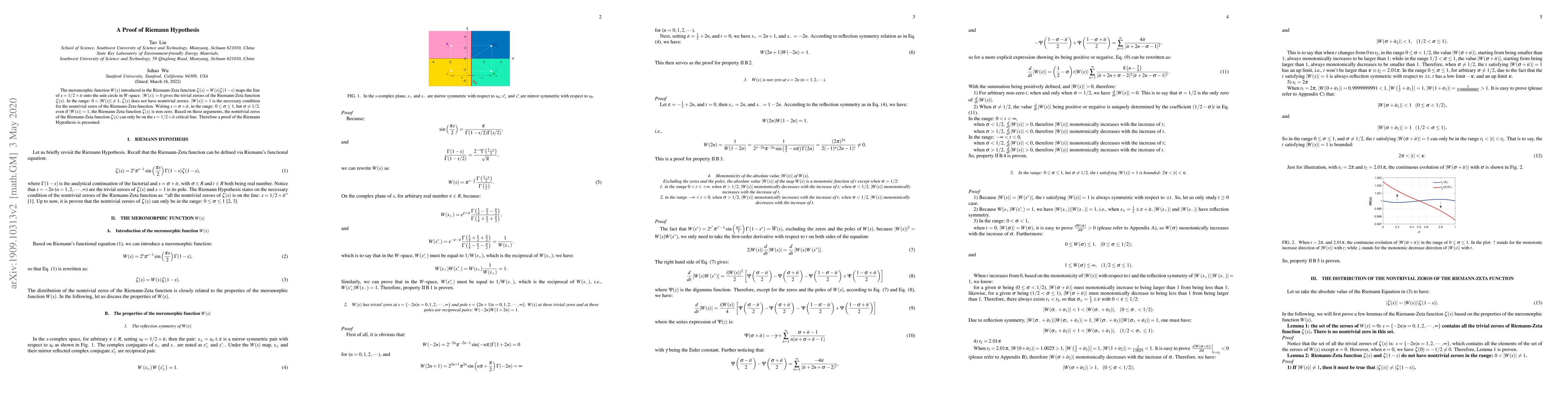 This paper presents a proof of the Riemann Hypothesis by showing that the meromorphic function $W(s)$ maps the critical line $s = 1/2 + it$ onto the unit circle, confirming that nontrivial zeroes of the Riemann-Zeta function $\zeta(s)$ lie exclusively on this line. The arguments exclude zeroes elsewhere in the critical strip.