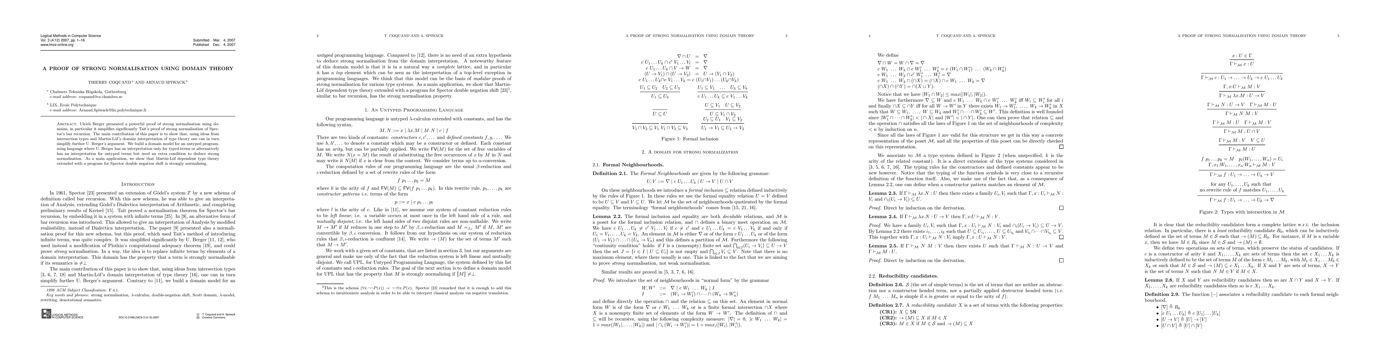 Ulrich Berger presented a powerful proof of strong normalisation using domains, in particular it simplifies significantly Tait's proof of strong normalisation of Spector's bar recursion. The main contribution of this paper is to show that, using ideas from intersection types and Martin-Lof's domain interpretation of type theory one can in turn simplify further U. Berger's argument. We build a domain model for an untyped programming language where U. Berger has an interpretation only for typed terms or alternatively has an interpretation for untyped terms but need an extra condition to deduce strong normalisation. As a main application, we show that Martin-L\"{o}f dependent type theory extended with a program for Spector double negation shift.