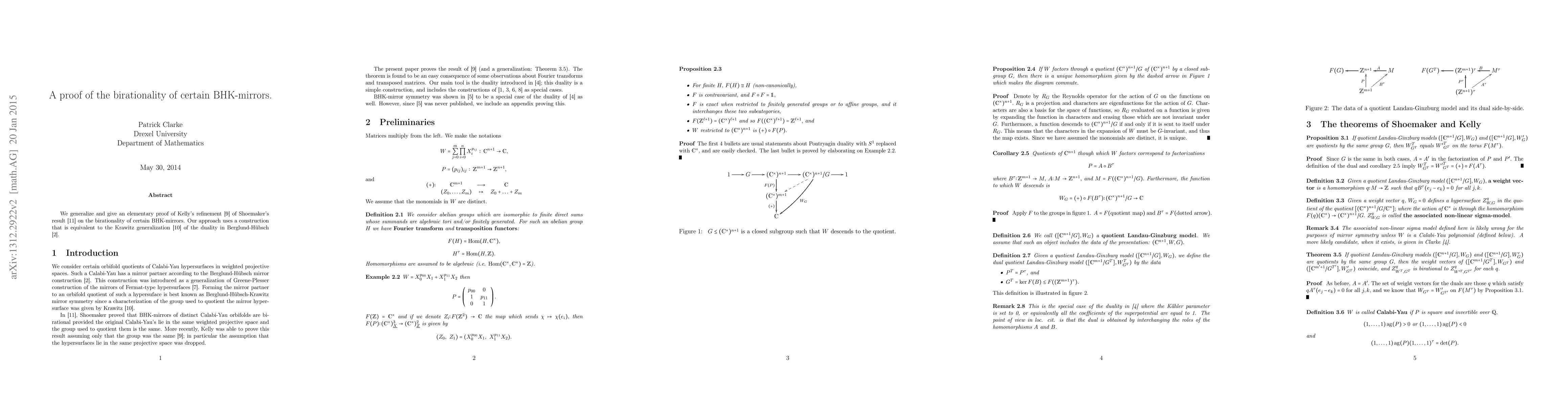 This paper provides an elementary proof of Kelly's refinement regarding the birationality of specific BHK-mirrors, utilizing a construction akin to Krawitz's generalization of Berglund-Hubsch duality. The method offers a new approach to establishing the birationality property.
