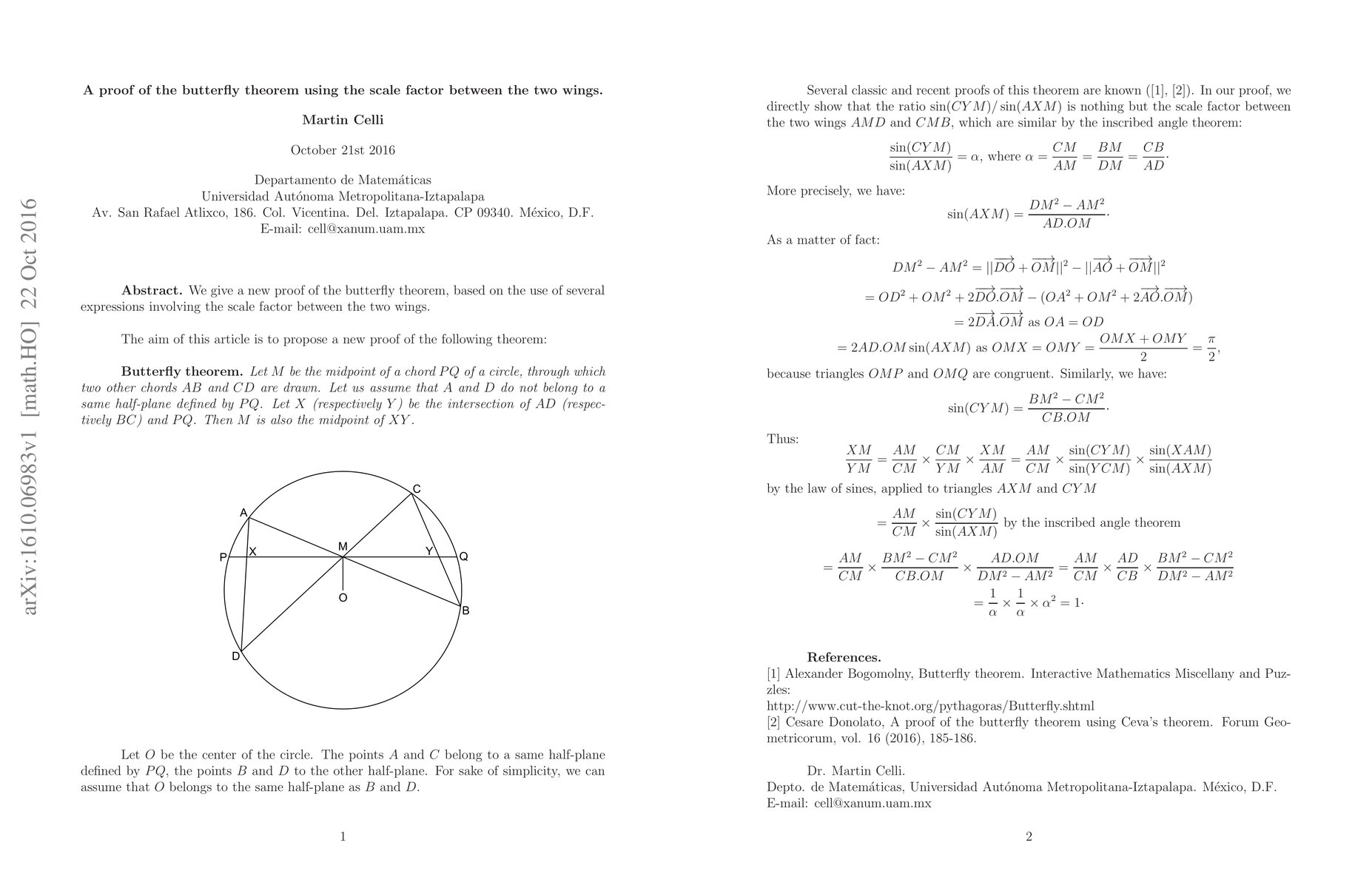 Researchers provide a new proof of the butterfly theorem using scale factor expressions between two wings, advancing understanding in fluid dynamics.