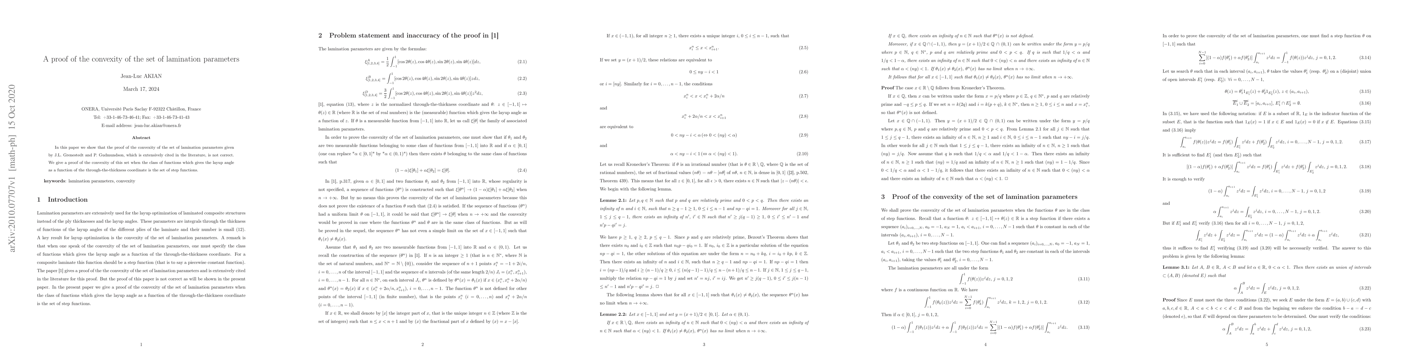 A study corrects a long-standing error in the proof of convexity for lamination parameters, showing that convexity holds under a specific class of functions, including step functions.