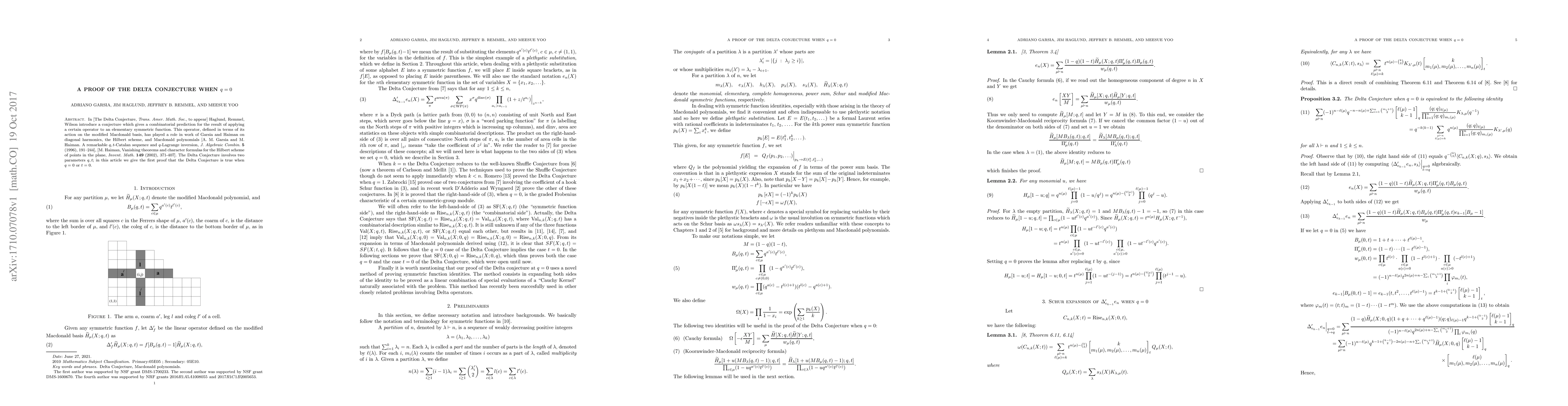 In [The Delta Conjecture, Trans. Amer. Math. Soc., to appear] Haglund, Remmel, Wilson introduce a conjecture which gives a combinatorial prediction for the result of applying a certain operator to an elementary symmetric function. This operator, defined in terms of its action on the modified Macdonald basis, has played a role in work of Garsia and Haiman on diagonal harmonics, the Hilbert scheme, and Macdonald polynomials [A. M. Garsia and M. Haiman. A remarkable $q,t$-Catalan sequence and $q$-Lagrange inversion, J. Algebraic Combin. 5 (1996), 191--244], [M. Haiman, Vanishing theorems and character formulas for the Hilbert scheme of points in the plane, Invent. Math. 149 (2002), 371-407]. The Delta Conjecture involves two parameters $q,t$; in this article we give the first proof that the Delta Conjecture is true when $q=0$ or $t=0$.