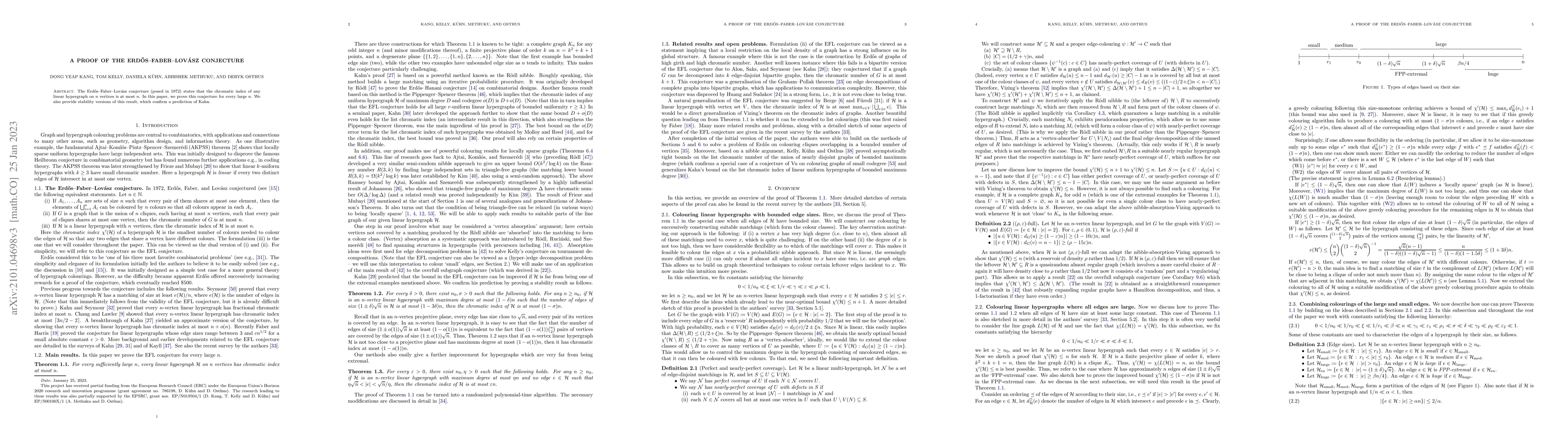 This paper proves the Erdős-Faber-Lovász conjecture for large $n$, asserting that the chromatic index of any linear hypergraph on $n$ vertices is at most $n$, and also provides stability versions confirming Kahn's prediction.