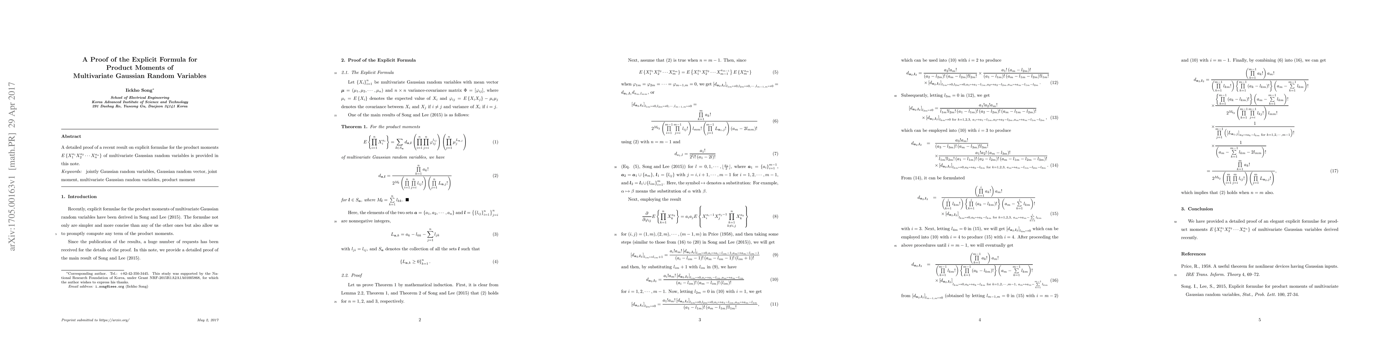 A detailed proof of a recent result on explicit formulae for the product moments $E \left \{ X_1^{a_1} X_2^{a_2} \cdots X_n^{a_n}\right \}$ of multivariate Gaussian random variables is provided in this note.