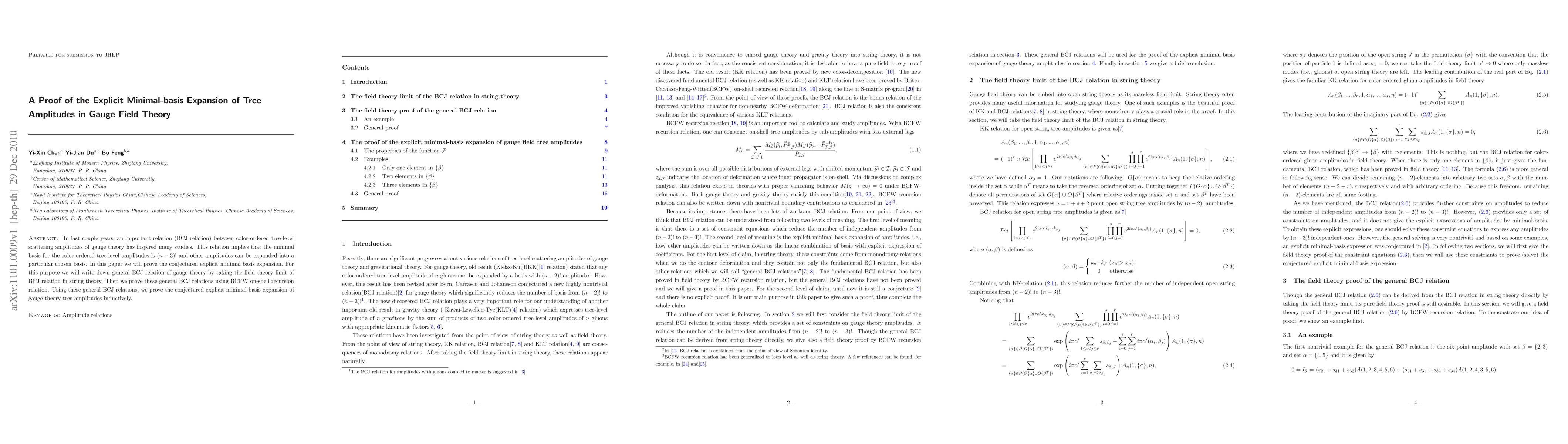 This paper proves the explicit minimal-basis expansion for color-ordered tree-level scattering amplitudes in gauge theory using the BCJ relation. The authors derive general BCJ relations via the field theory limit of string theory and use the BCFW on-shell recursion relation to inductively prove the conjectured minimal basis.