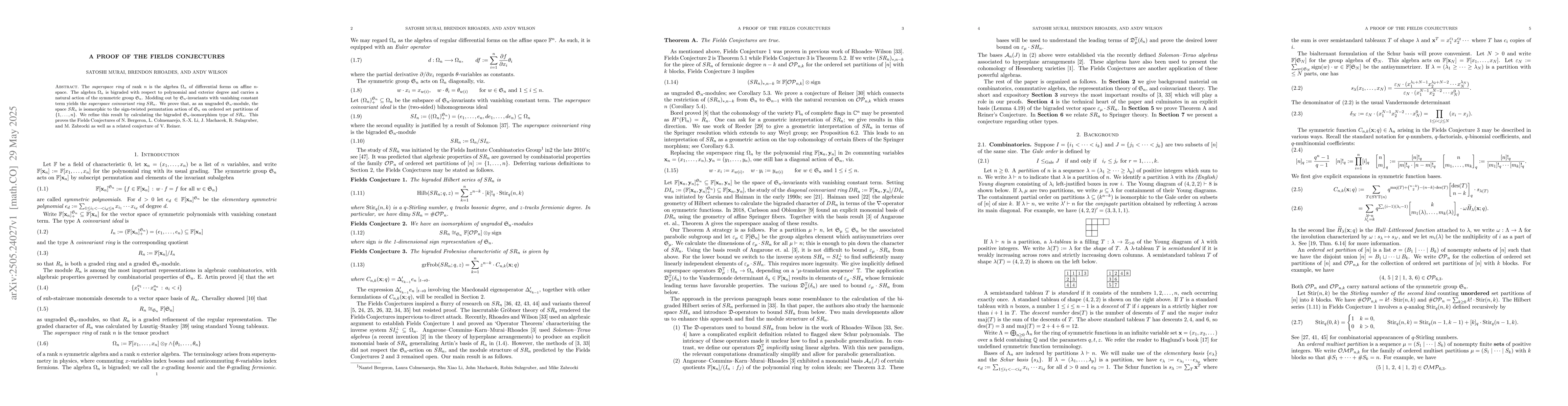 The {\em superspace ring} of rank $n$ is the algebra $\Omega_n$ of differential forms on affine $n$-space. The algebra $\Omega_n$ is bigraded with respect to polynomial and exterior degree and carries a natural action of the symmetric group $\mathfrak{S}_n$. Modding out by $\mathfrak{S}_n$-invariants with vanishing constant term yields the {\em superspace coinvariant ring} $SR_n$. We prove that, as an ungraded $\mathfrak{S}_n$-module, the space $SR_n$ is isomorphic to the sign-twisted permutation action of $\mathfrak{S}_n$ on ordered set partitions of $\{1,\dots,n\}$. We refine this result by calculating the bigraded $\mathfrak{S}_n$-isomorphism type of $SR_n$. This proves the Fields Conjectures of N. Bergeron, L. Colmenarejo, S.-X. Li, J. Machacek, R. Sulzgruber, and M. Zabrocki as well as a related conjecture of V. Reiner.