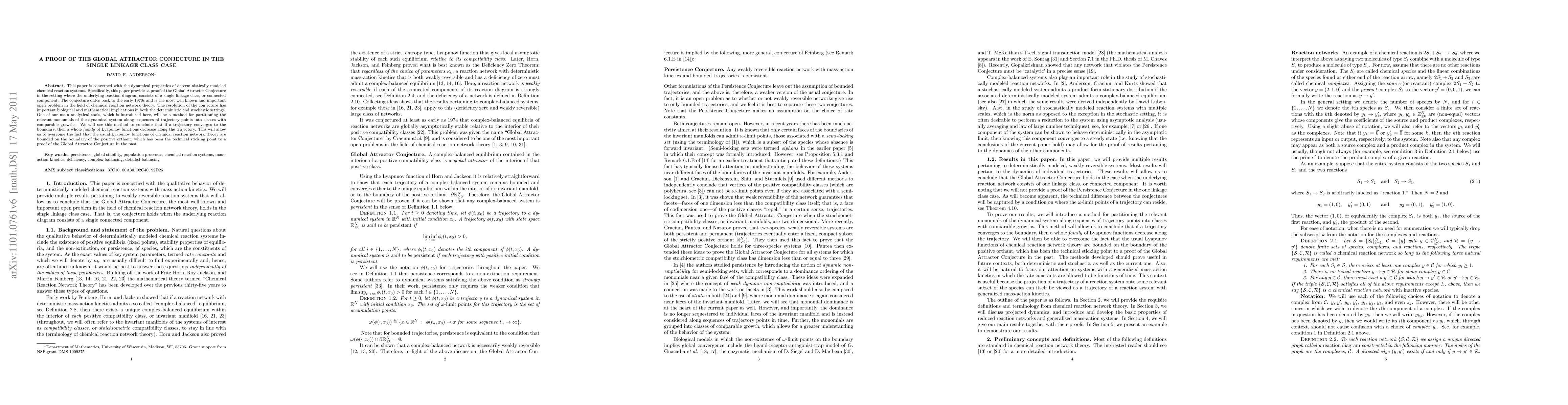 This paper is concerned with the dynamical properties of deterministically modeled chemical reaction systems. Specifically, this paper provides a proof of the Global Attractor Conjecture in the setting where the underlying reaction diagram consists of a single linkage class, or connected component. The conjecture dates back to the early 1970s and is the most well known and important open problem in the field of chemical reaction network theory. The resolution of the conjecture has important biological and mathematical implications in both the deterministic and stochastic settings. One of our main analytical tools, which is introduced here, will be a method for partitioning the relevant monomials of the dynamical system along sequences of trajectory points into classes with comparable growths. We will use this method to conclude that if a trajectory converges to the boundary, then a whole family of Lyapunov functions decrease along the trajectory. This will allow us to overcome the fact that the usual Lyapunov functions of chemical reaction network theory are bounded on the boundary of the positive orthant, which has been the technical sticking point to a proof of the Global Attractor Conjecture in the past.