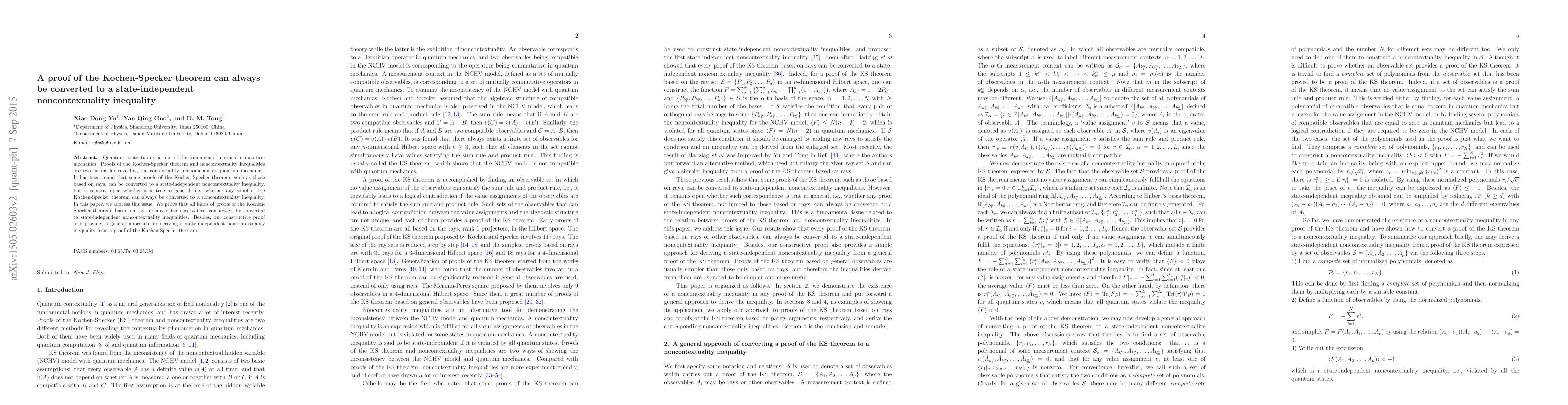 This paper demonstrates that any proof of the Kochen-Specker theorem can be transformed into a state-independent noncontextuality inequality, thus confirming the general applicability of revealing quantum contextuality through these means. The authors provide a constructive proof that establishes a universal conversion method.