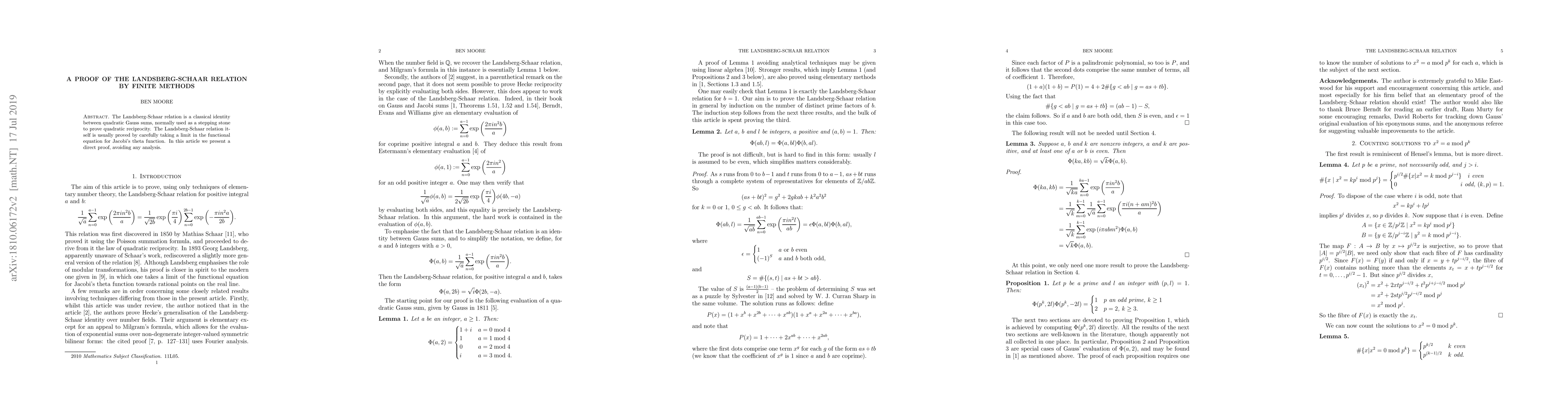 The Landsberg-Schaar relation is a classical identity between quadratic Gauss sums, normally used as a stepping stone to prove quadratic reciprocity. The Landsberg-Schaar relation itself is usually proved by carefully taking a limit in the functional equation for Jacobi's theta function. In this article we present a direct proof, avoiding any analysis.