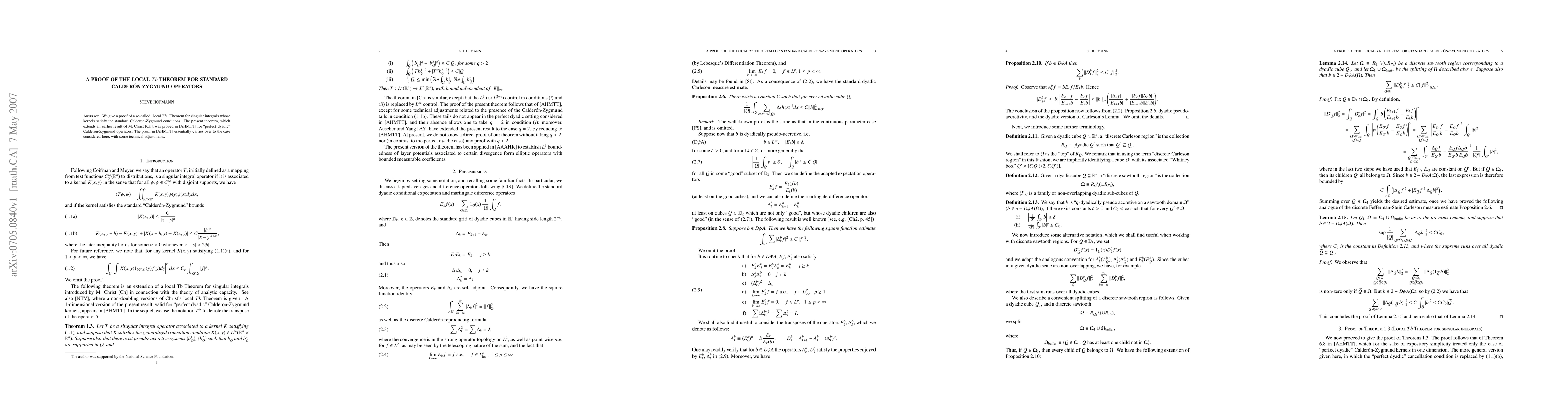 This paper provides a proof of the local $Tb$ Theorem for standard Calderón-Zygmund operators, extending a previous result by M. Christ and adapting the proof from a study on "perfect dyadic" operators with technical modifications.