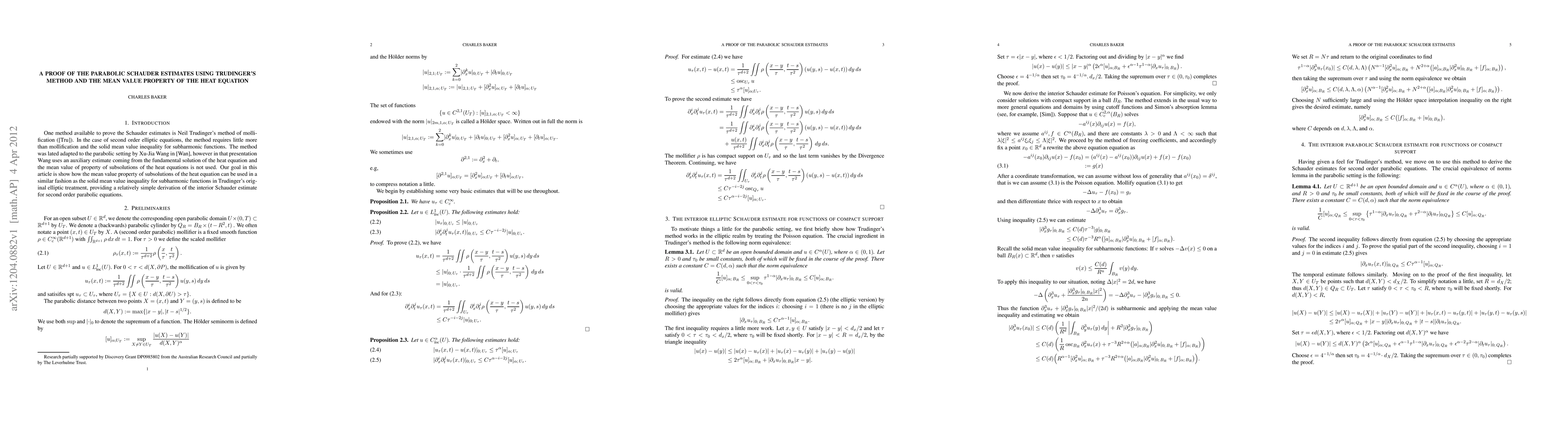 One method available to prove the Schauder estimates is Neil Trudinger's method of mollification. In the case of second order elliptic equations, the method requires little more than mollification and the solid mean value inequality for subharmonic functions. Our goal in this article is show how the mean value property of subsolutions of the heat equation can be used in a similar fashion as the solid mean value inequality for subharmonic functions in Trudinger's original elliptic treatment, providing a relatively simple derivation of the interior Schauder estimate for second order parabolic equations.