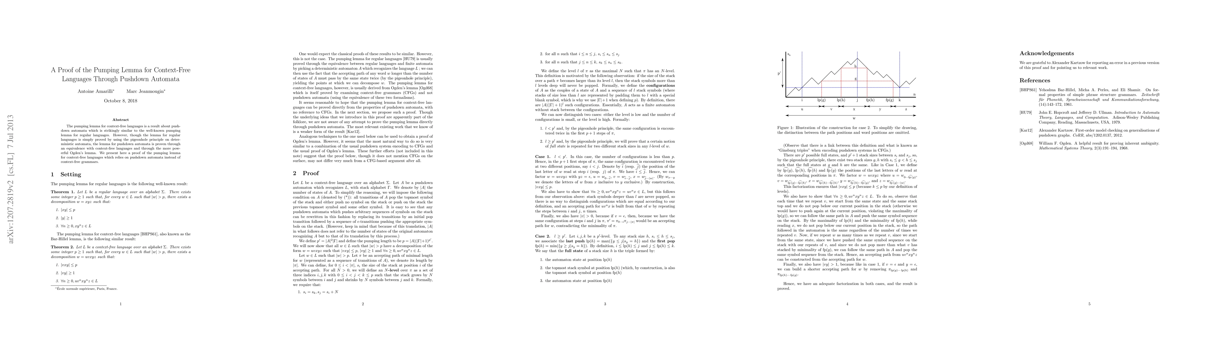 This work is novel because it provides a direct proof of the pumping lemma for context-free languages using pushdown automata, which is not typically done in this field.