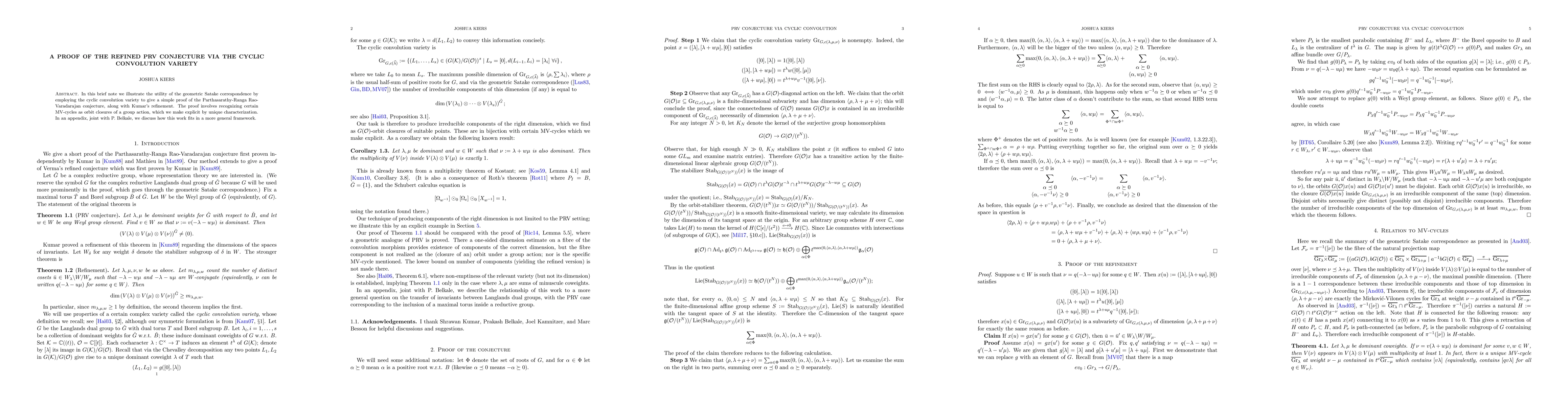 In this brief note we illustrate the utility of the geometric Satake correspondence by employing the cyclic convolution variety to give a simple proof of the Parthasarathy-Ranga Rao-Varadarajan conjecture, along with Kumar's refinement. The proof involves recognizing certain MV-cycles as orbit closures of a group action, which we make explicit by unique characterization. In an appendix, joint with P. Belkale, we discuss how this work fits in a more general framework.