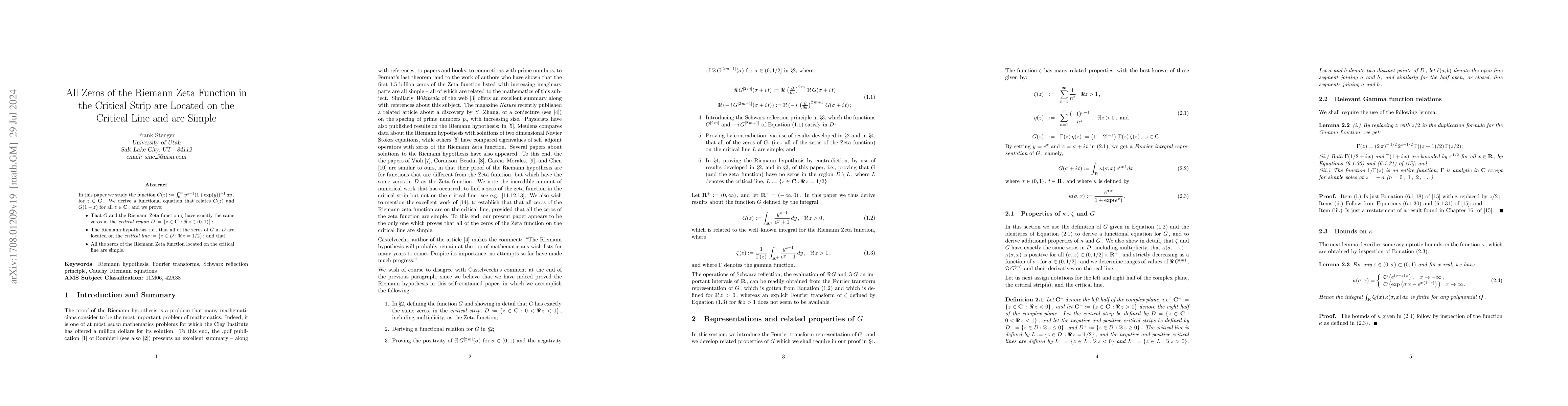 This paper claims to prove the Riemann Hypothesis by showing that all zeros of the Riemann zeta function lie on the critical line using the special function G(z) and its Fourier integral representation, combining functional equations, analyticity, and numerical integration techniques.