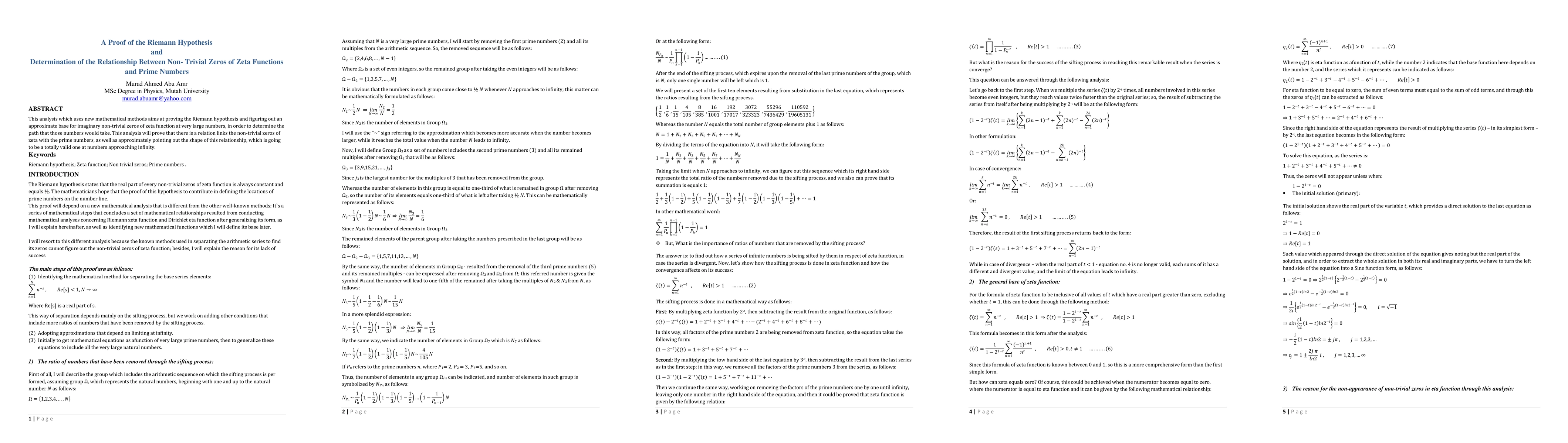 This paper presents a novel mathematical approach to prove the Riemann Hypothesis and identifies a pattern linking the non-trivial zeros of the zeta function to prime numbers, suggesting a valid relationship as numbers approach infinity.