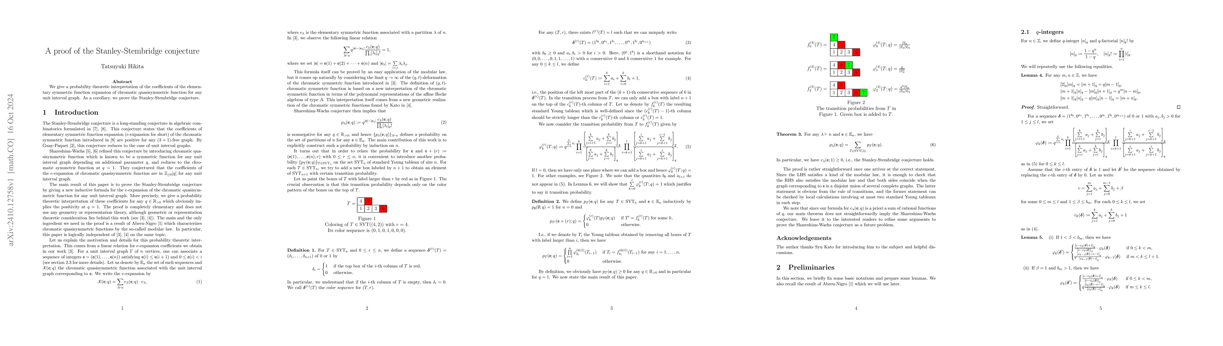 The paper introduces a novel probabilistic interpretation of chromatic quasisymmetric functions and proves a modular law for these functions, leading to the resolution of the Stanley-Stembridge conjecture.
