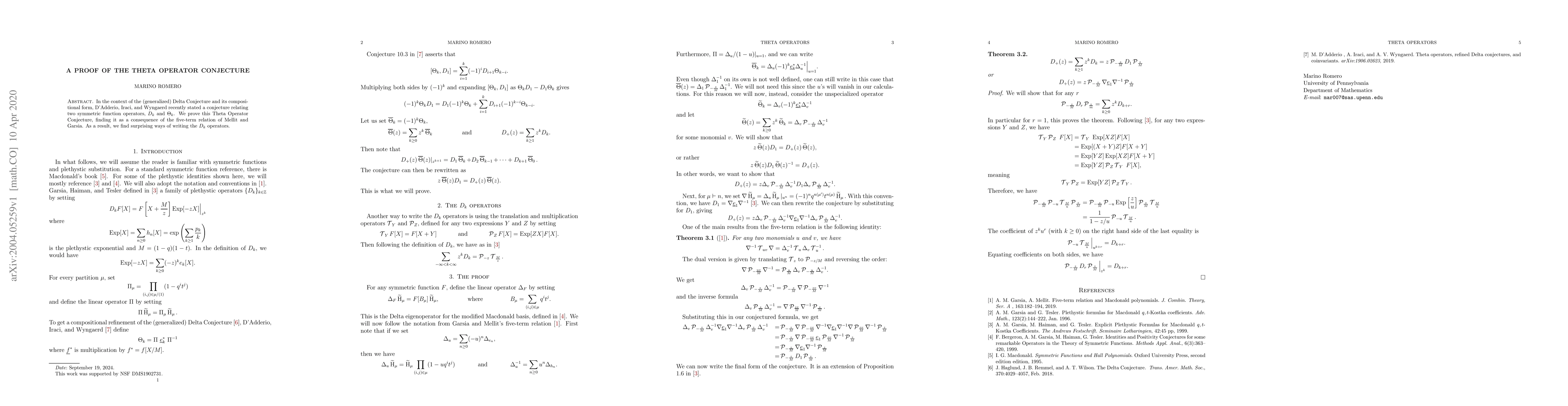 Researchers prove the Theta Operator Conjecture as a consequence of the five-term relation of Mellit and Garsia, finding new ways to express $D_k$ operators.