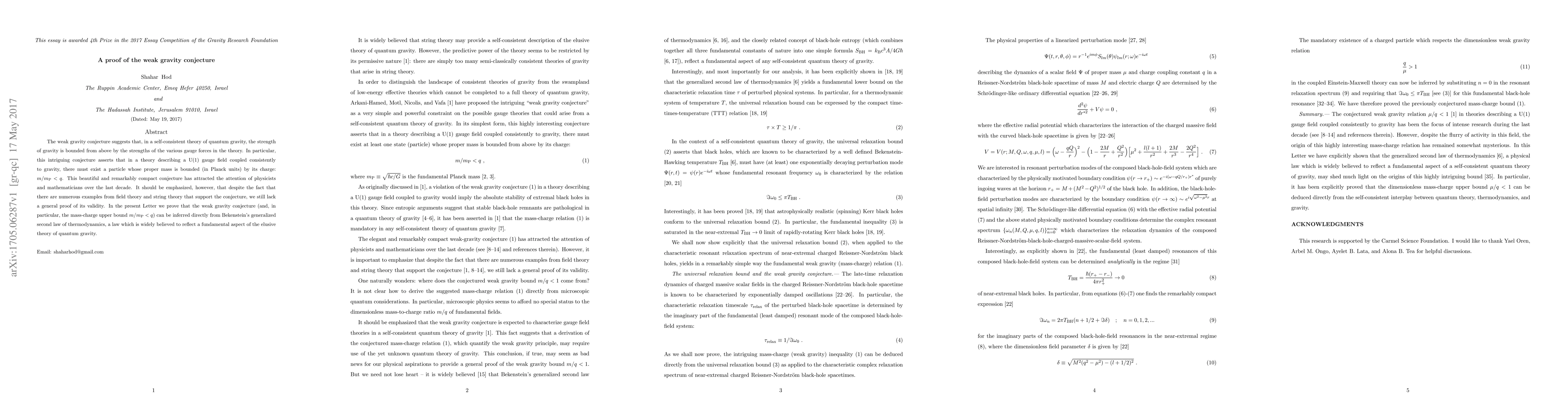 conjecture asserts that in a theory describing a U(1) gauge field coupled