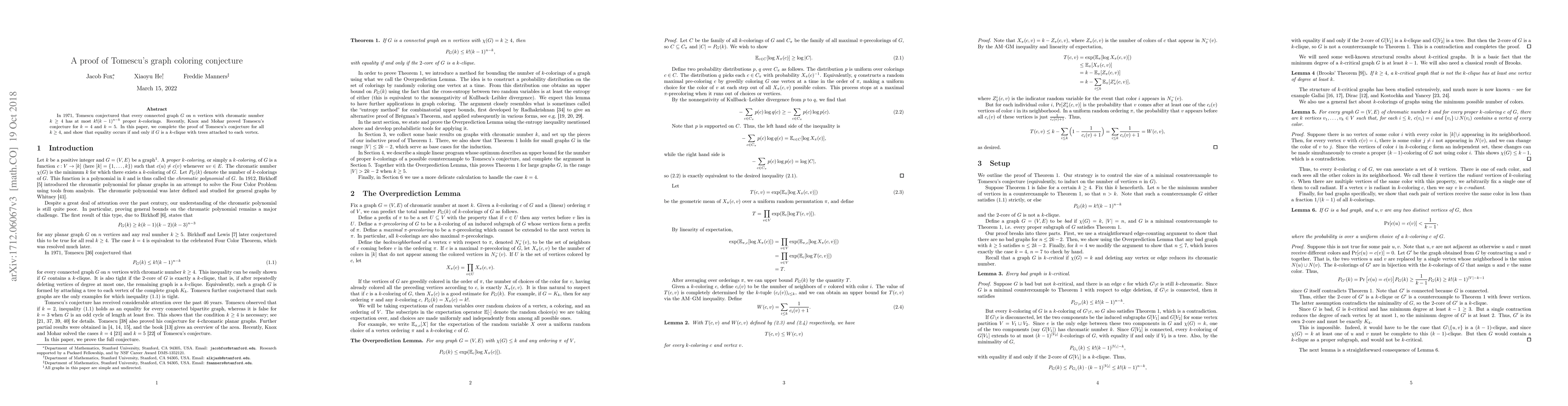 This paper completes the proof of Tomescu's graph coloring conjecture for all $k \geq 4$, confirming that connected graphs with chromatic number $k$ have at most $k!(k-1)^{n-k}$ proper $k$-colorings, with equality holding only for $k$-cliques with trees attached to each vertex.