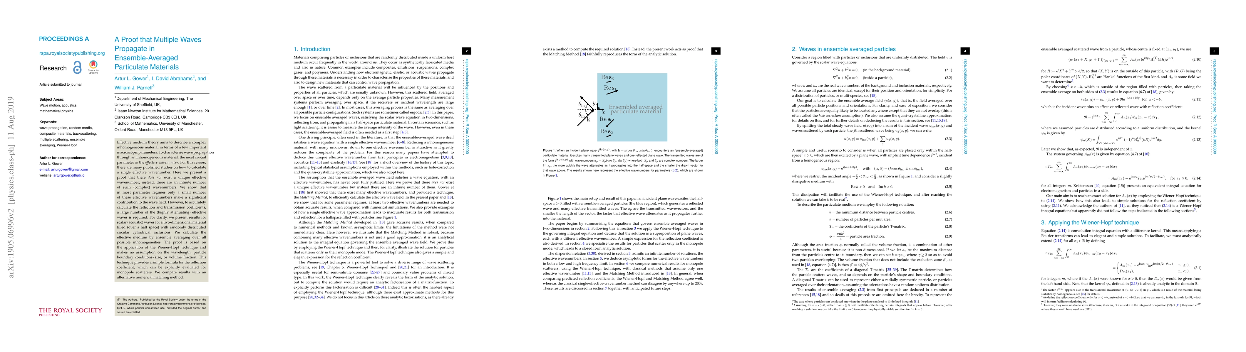 Effective medium theory aims to describe a complex inhomogeneous material in terms of a few important macroscopic parameters. To characterise wave propagation through an inhomogeneous material, the most crucial parameter is the effective wavenumber. For this reason, there are many published studies on how to calculate a single effective wavenumber. Here we present a proof that there does not exist a unique effective wavenumber; instead, there are an infinite number of such (complex) wavenumbers. We show that in most parameter regimes only a small number of these effective wavenumbers make a significant contribution to the wave field. However, to accurately calculate the reflection and transmission coefficients, a large number of the (highly attenuating) effective waves is required. For clarity, we present results for scalar (acoustic) waves for a two-dimensional material filled (over a half space) with randomly distributed circular cylindrical inclusions. We calculate the effective medium by ensemble averaging over all possible inhomogeneities. The proof is based on the application of the Wiener-Hopf technique and makes no assumption on the wavelength, particle boundary conditions/size, or volume fraction. This technique provides a simple formula for the reflection coefficient, which can be explicitly evaluated for monopole scatterers. We compare results with an alternative numerical matching method.