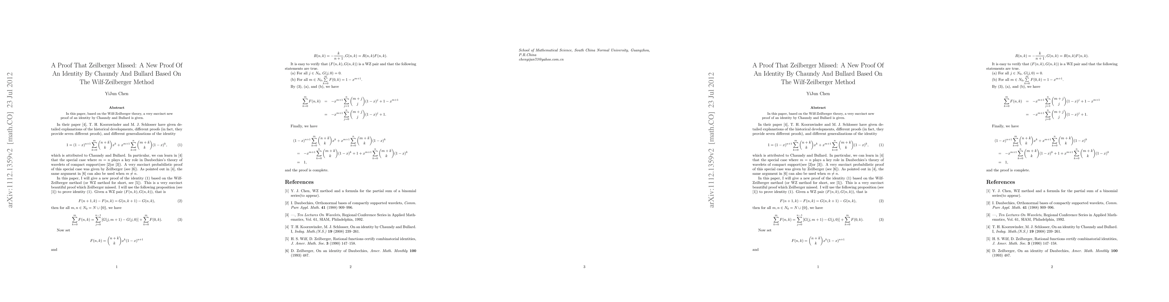 In this paper, based on the WZ theory, a very succinct new proof, of an identity by Chaundy and Bullard, was given.
