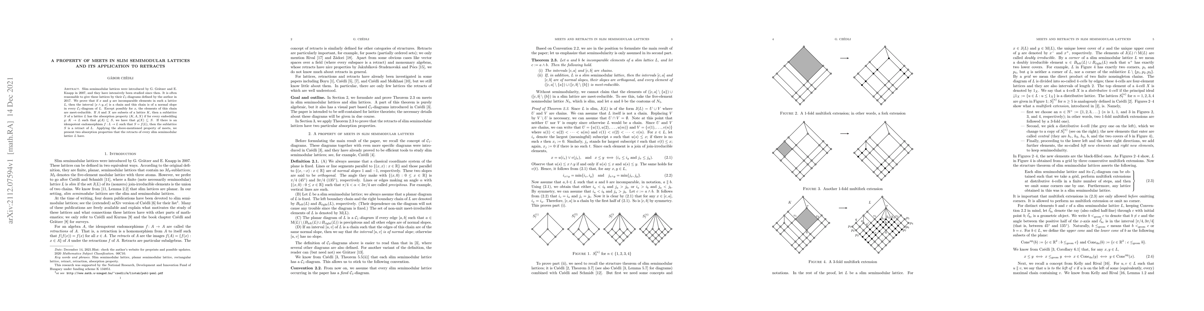 This paper proves that in slim semimodular lattices, the interval between incomparable elements forms a chain of normal slope in $\mathcal C_1$-diagrams, and these elements are meet-reducible. It also establishes two absorption properties for retracts of such lattices based on the meet structure.
